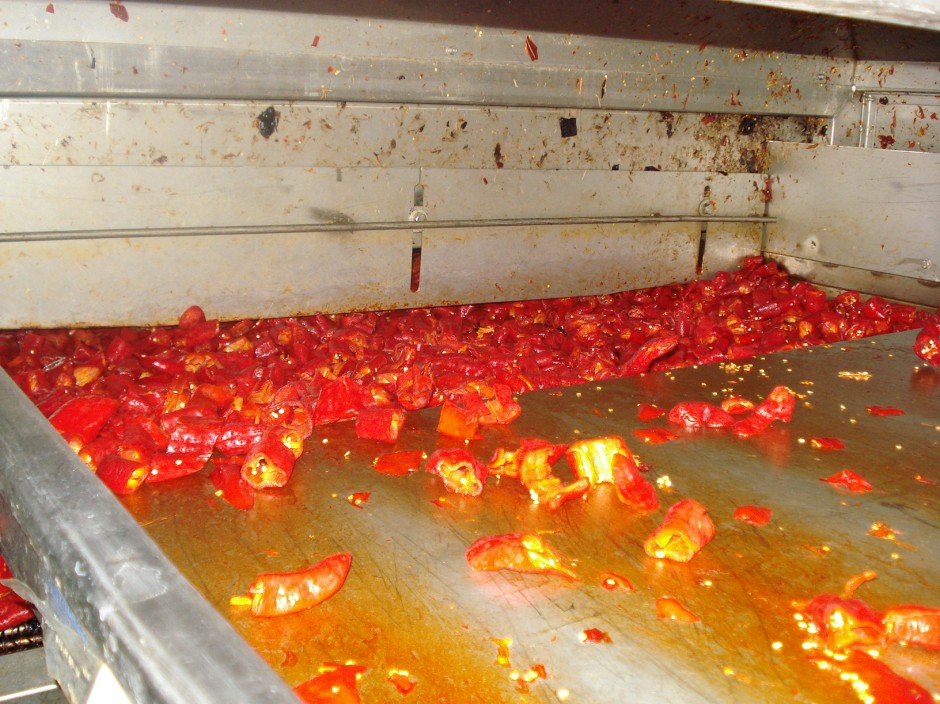 La lavorazione che precede l'essicamento prevede il taglio del peperone in tranci il piu posibile uguali per ragioni di uniformità di essicamento.