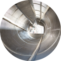 Nella fase seguente il prodotto viene caricato all’interno della tramoggia e attraverso uno scivolo d’acqua, raggiunge il cilindro.