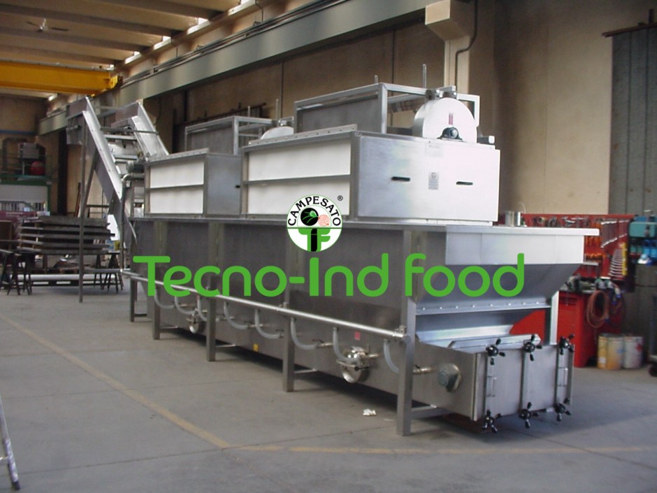 Anche in questo caso nella parte superiore viene effettuato un ulteriore risciacquo e successivamente il prodotto precipita nella macchina successiva alla vasca.